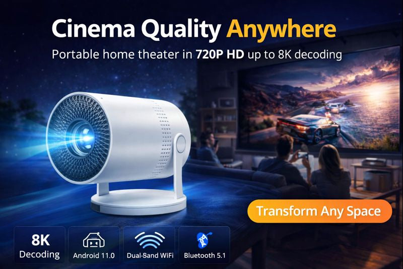 Turn any wall, ceiling, or backyard setup into a big-screen experience in minutes with the Salange P300 Mini Portable Projector. Its crisp native 720P picture and support for high-resolution decoding deliver sharp, vivid movie nights—without hauling bulky gear. With Android 11 built in, you can stream over fast dual-band Wi-Fi, then pair Bluetooth speakers or headphones for better sound. From 40” to 130” with easy keystone correction, it’s perfect for living rooms, travel, and outdoor hangouts—so you can watch more, share more, and make any space feel like a theater.